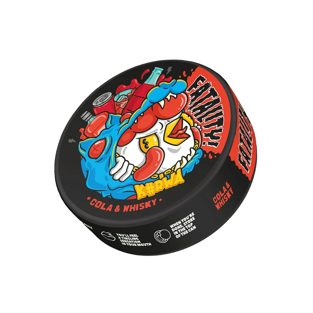 Discover a daring fusion where sparkling cola meets the warm depth of whisky. Kurwa Fatality Cola & Whisky nicotine pouches deliver an adventurous, refined flavor profile crafted for those who seek excitement in every pouch.